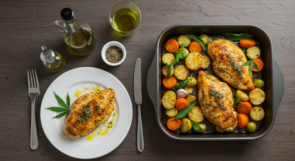 Ingredients: cannabis oil, chicken breasts, garlic and onions