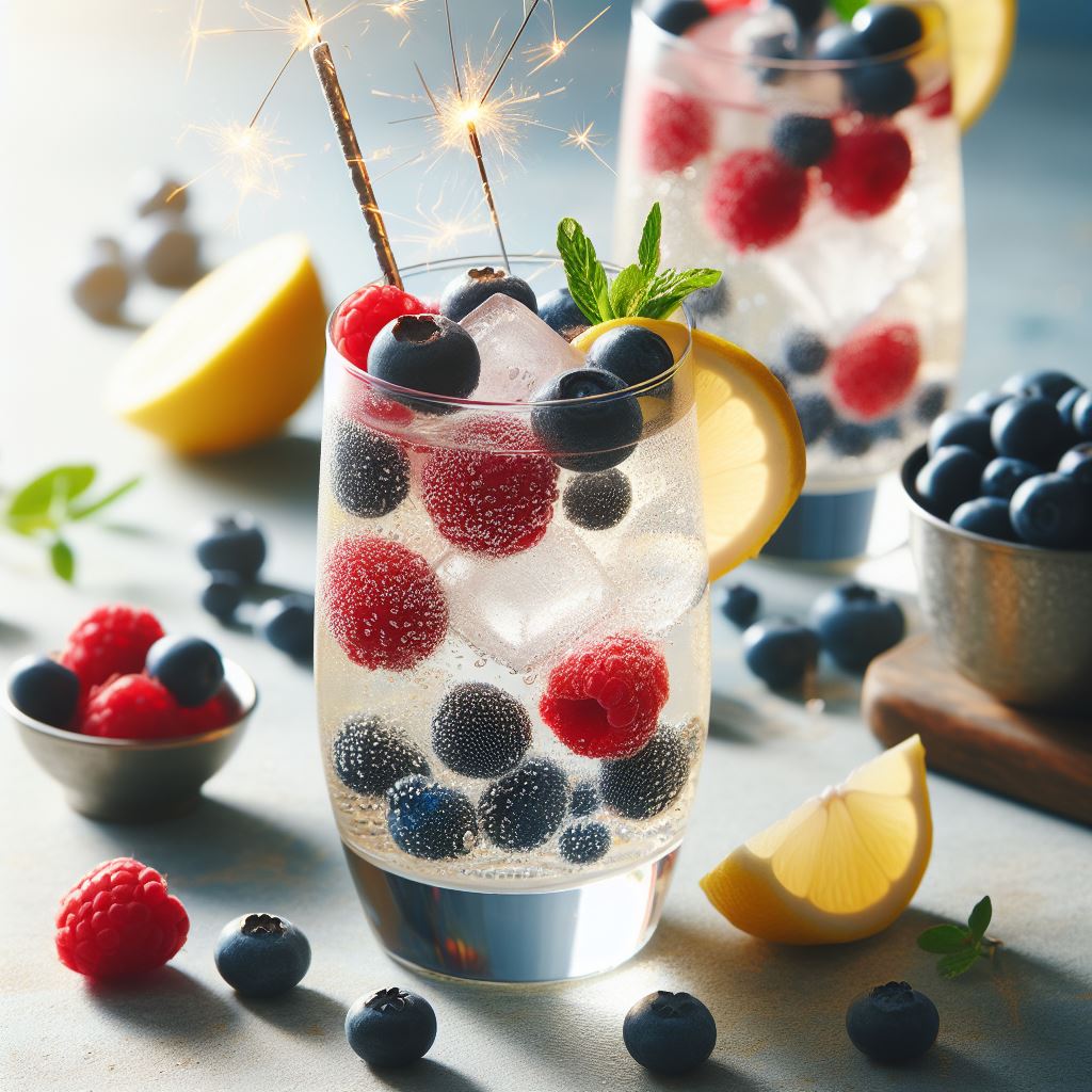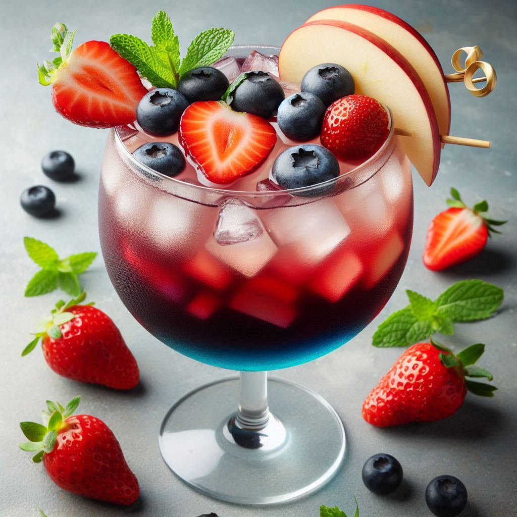 - Garnish: Fresh raspberries and blueberries, lemon slice